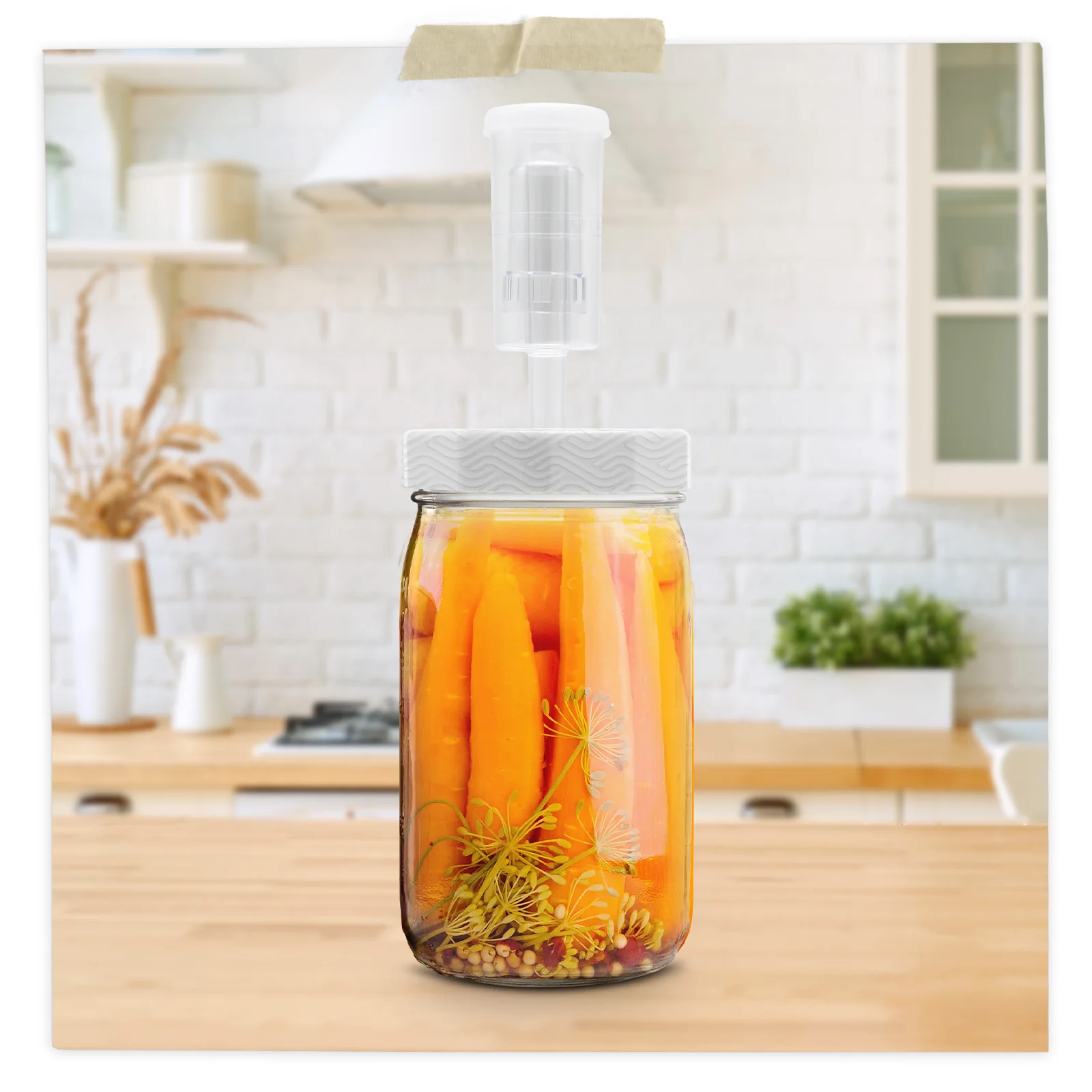 The silicone gasket provides a secure, airtight seal to protect your ferment from outside air and contaminants. Each lid features a decorative design and is made from food-safe plastic that’s reusable and dishwasher safe. This set offers a practical, cost-effective way to repurpose mason jars for home fermentation projects.