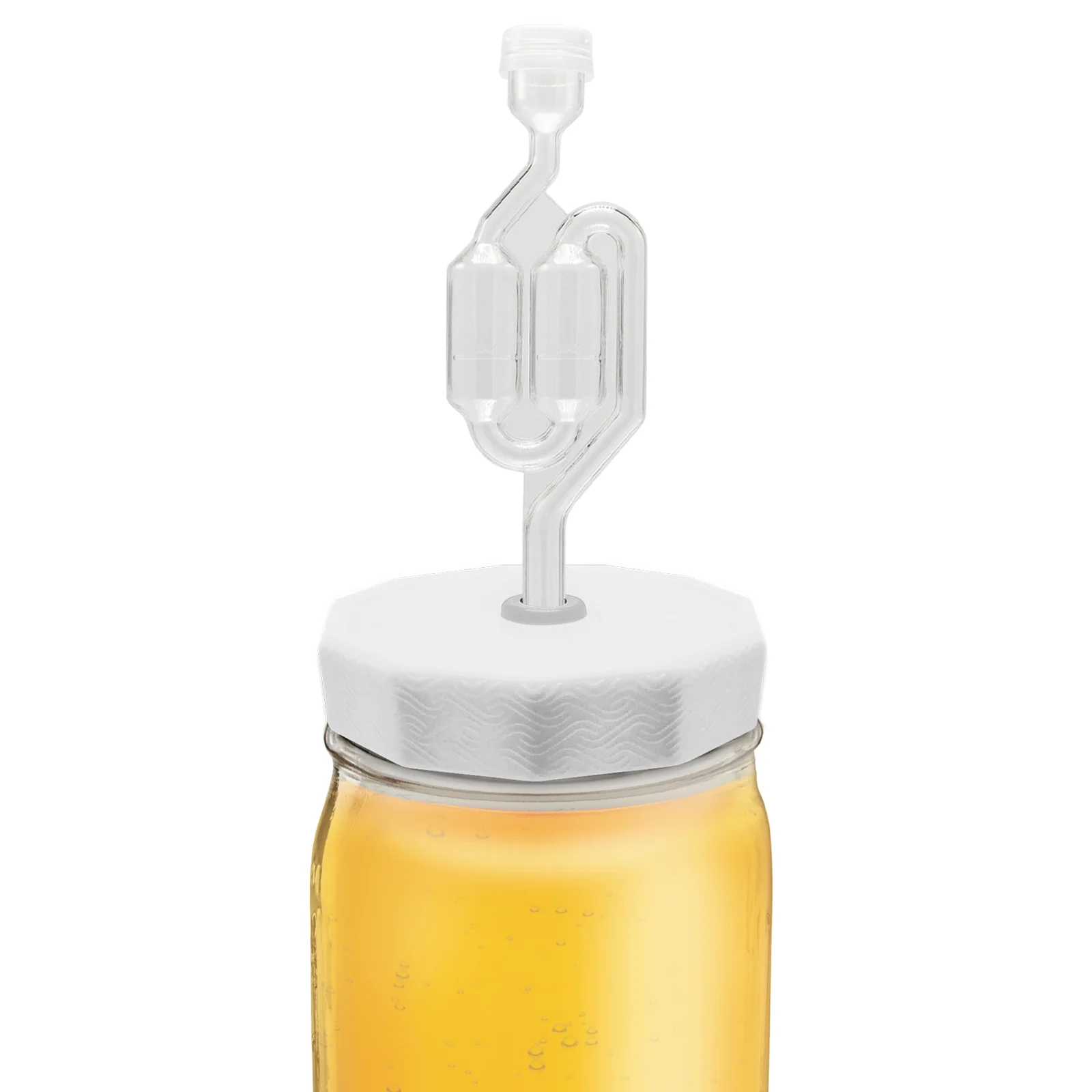 This 4-pack fermentation lid set is made to fit standard 86mm wide-mouth mason jars and includes everything you need to get started fermenting right away. Each lid comes with a pre-installed silicone gasket and grommet, along with a s-airlock. The setup takes less than a minute, turning your existing mason jars into reliable fermenters.