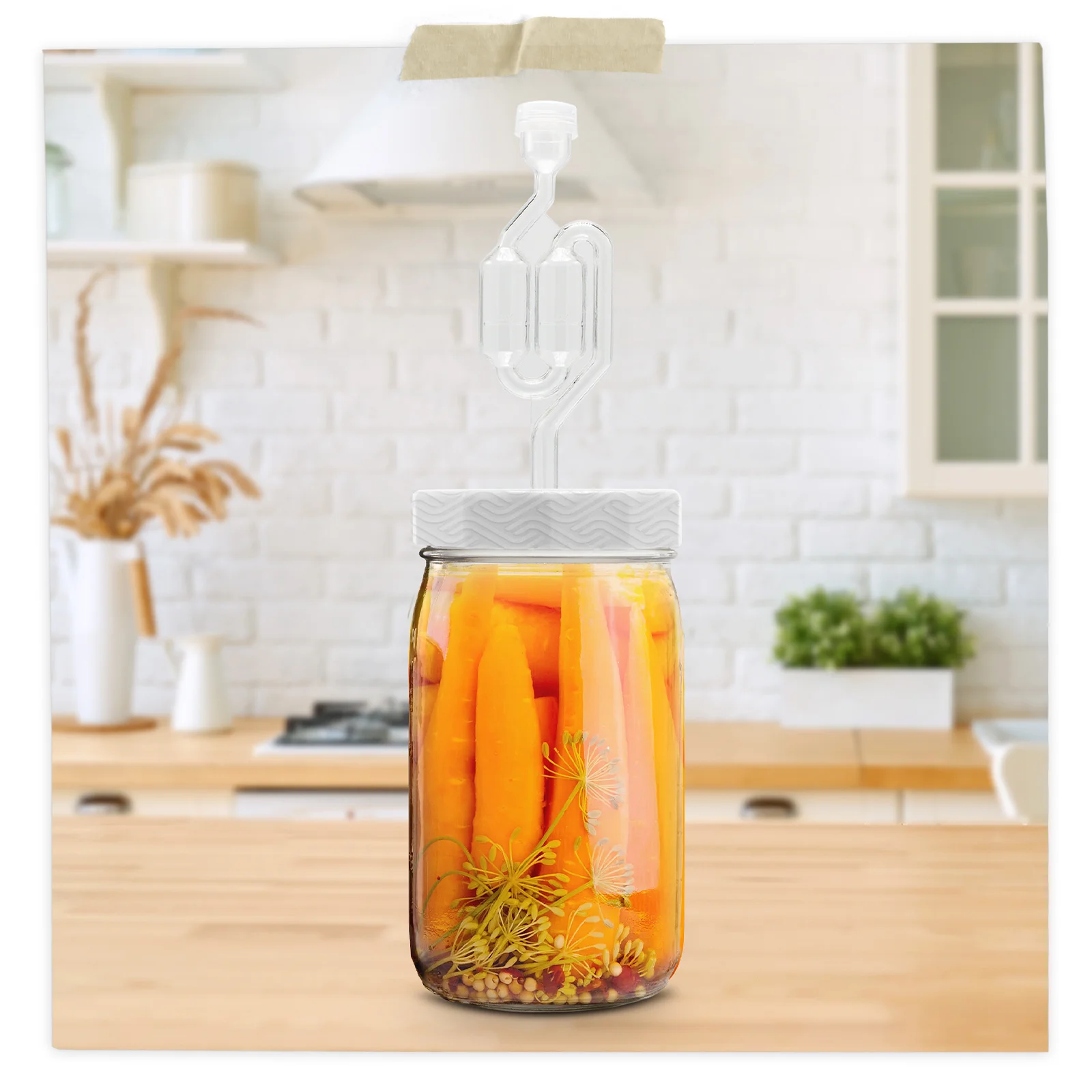 These lids are great for fermenting a wide range of foods and beverages—sauerkraut, kimchi, pickles, or even small batches of cider, beer, wine, and mead. The s-airlocks allow gases to escape while blocking oxygen from entering, which helps create the proper anaerobic environment needed for fermentation.