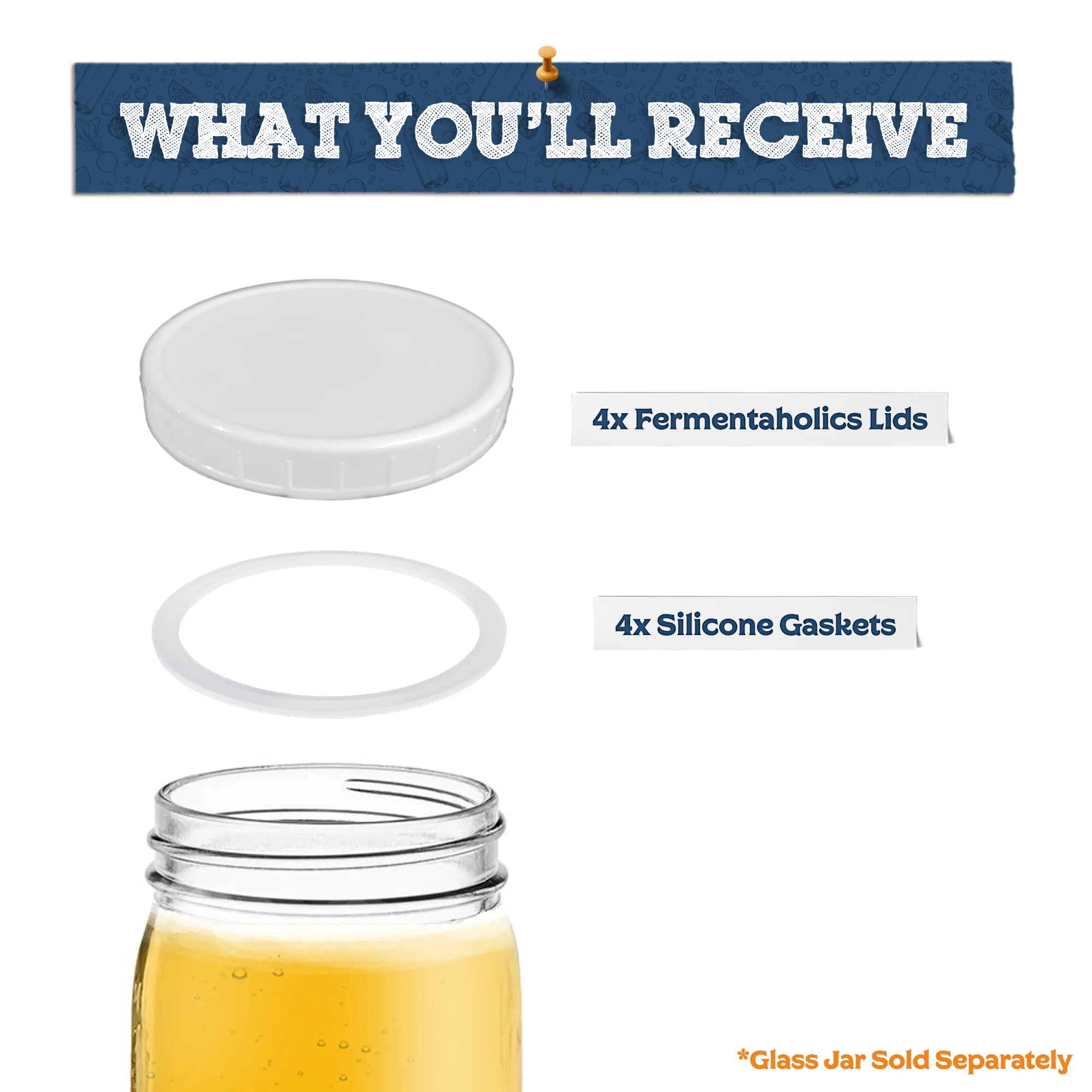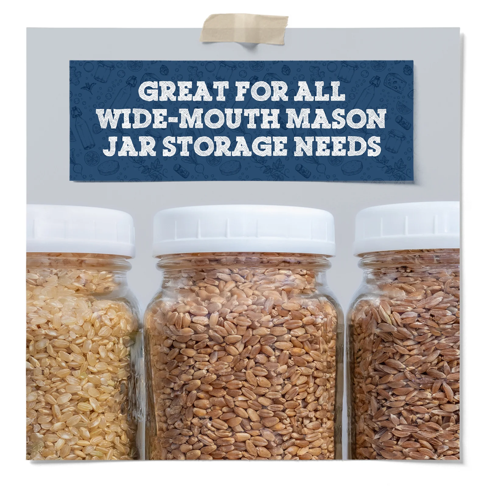 Upgrade your jar storage with this 4-pack of white wide mouth plastic mason jar lids, each equipped with a snug silicone gasket for an airtight, leak-resistant seal. These lids are compatible with all standard 86mm wide mouth mason jars, making them a versatile solution for everyday household needs.