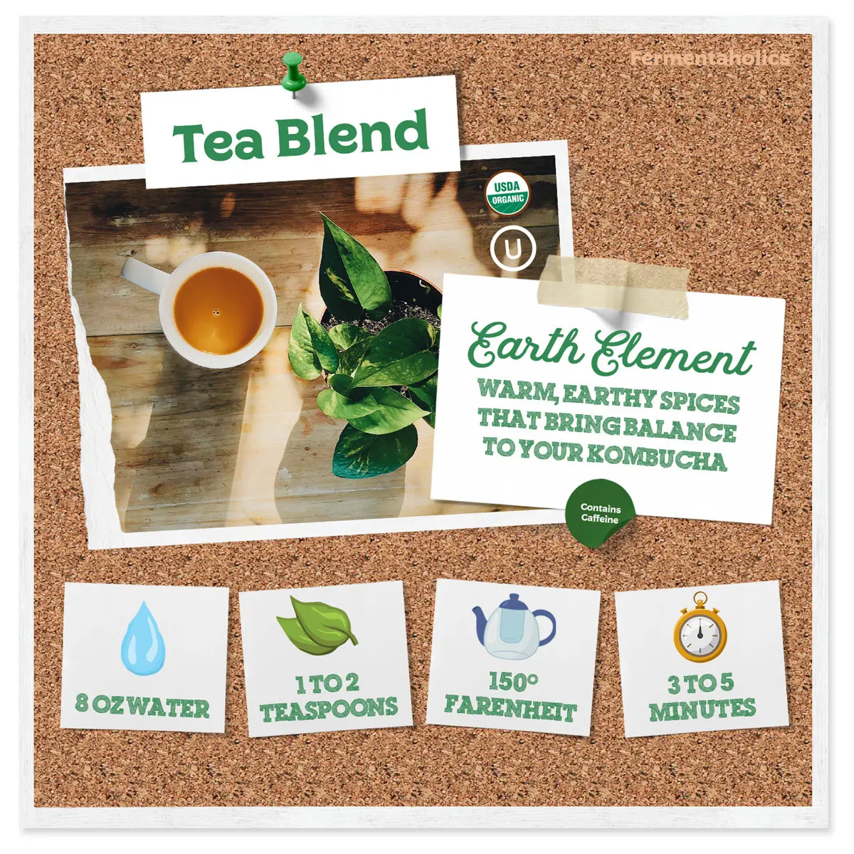 A touch of clove, cinnamon, and chamomile bring a bold yet comforting aroma, making a perfect cup of tea or a healthy batch of kombucha.