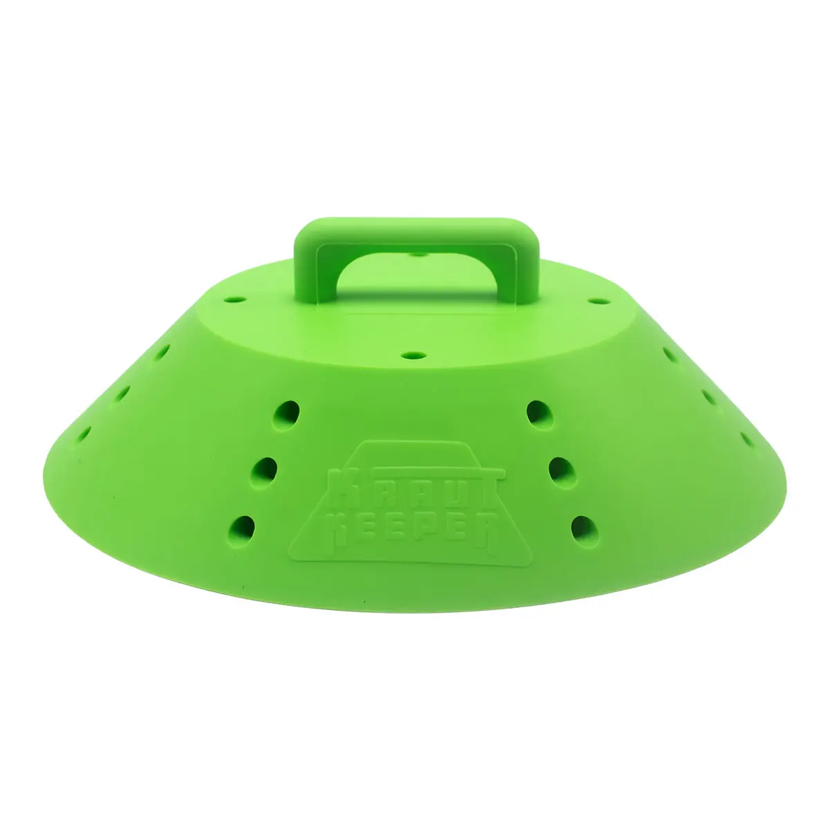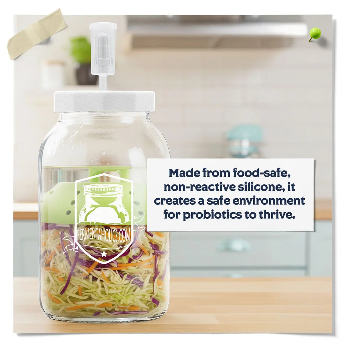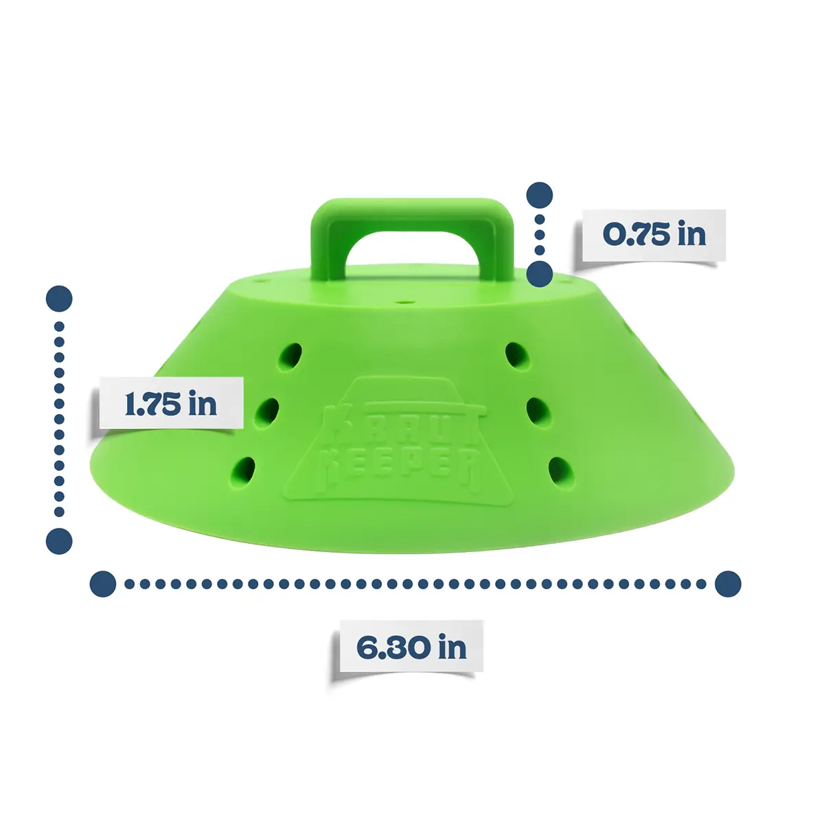 The KrautKeeper™ works best for larger batches — typically half-gallon to gallon-sized ferments. If you’re looking for a solution for wide-mouth mason jars (like quart-size or smaller batches), check out our fermentation anchor weights instead. They’re designed specifically for that size and setup.