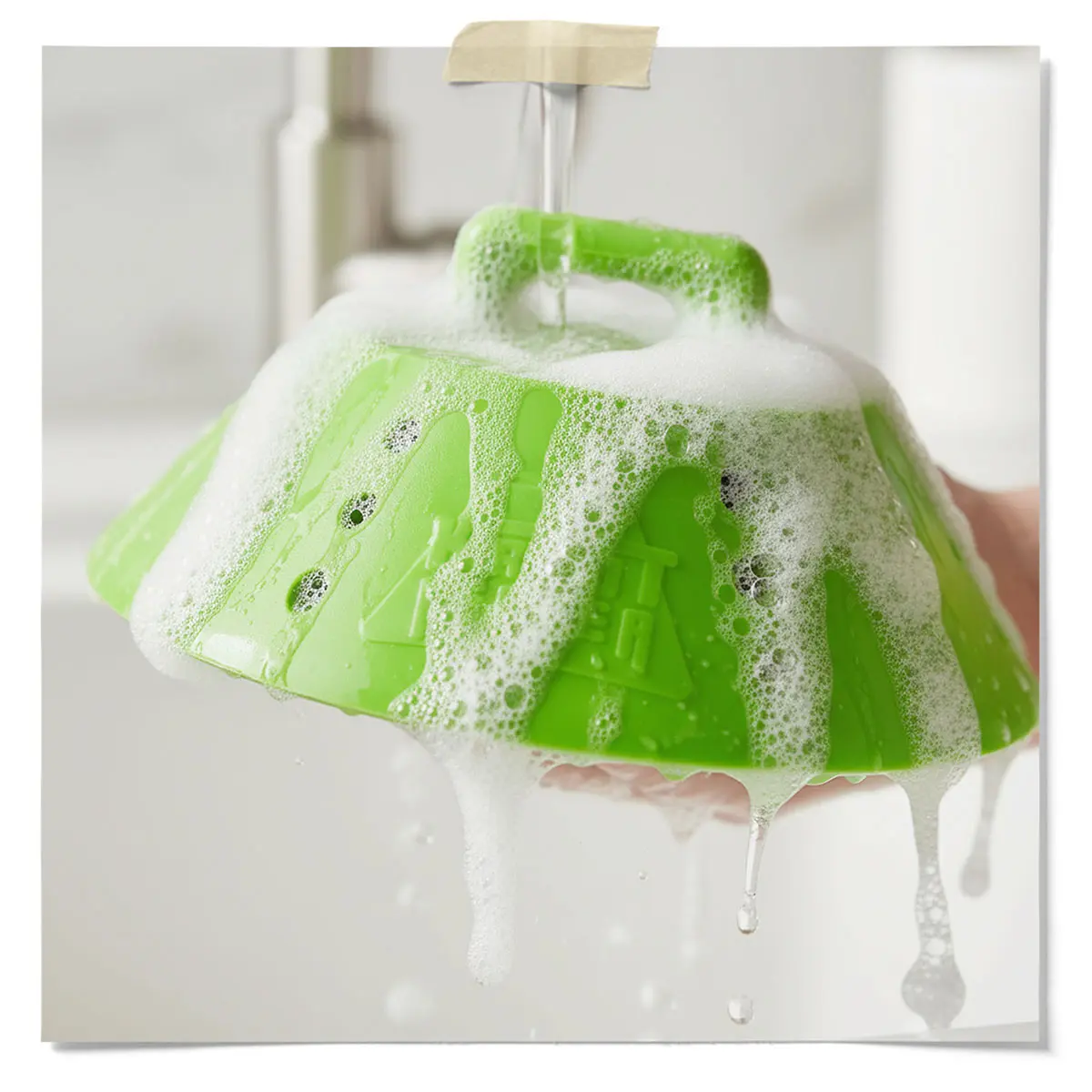 The KrautKeeper™ is a simple tool that makes fermenting foods of any kind easier — whether you’re making sauerkraut, kimchi, pickles, or something else. It’s designed to fit snugly into standard 1-gallon jars, or any jar with a 6.3-inch interior diameter, keeping everything fully submerged in brine where it needs to stay. This helps prevent spoilage and keeps the fermentation process on track. Made from food-grade silicone, it’s easy to clean, built to last, and can also be used as a strainer or microwave cover when not in use.