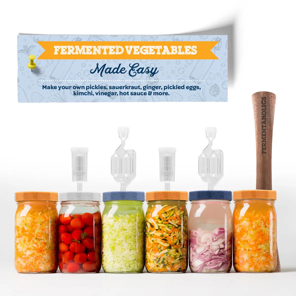 Fermentation is made easy with our 4-pack lids and airlocks. Fits all wide-mouth jars for sauerkraut, kimchi, and more. Secure silicone gaskets ensure seal ferments every time.