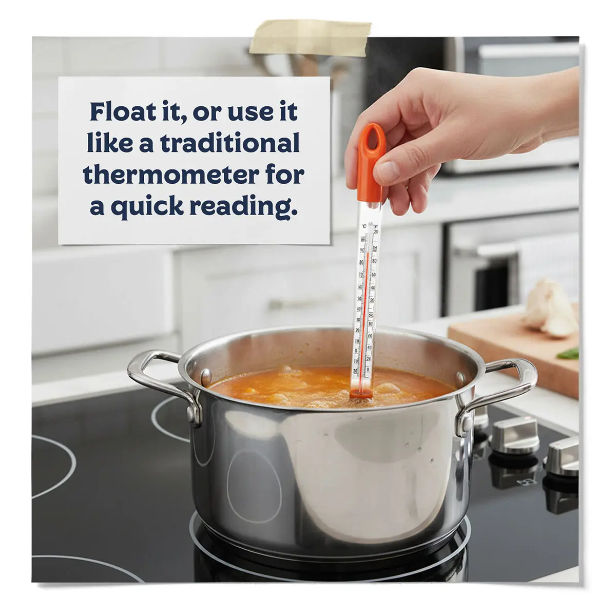 Keep better control of your mash temps, is great for all-grain brewing! This thermometer will float right in your mash, giving you real-time temperature readings. Helps to get a more accurate temperature reading than a liquid crystal thermometer for your beer in a carboy, or an easy way to constantly monitor the temperature of your wort during mashing or cooling. Has a weighted base to keep the thermometer floating upright. Can also be hung. The easy to read spirit thermometer’s scale is divided into two-degree increments. Not recommended for boiling. Made of glass. Scale 0 to 220 Fahrenheit or -20 to 100 Celsius. The ballast is non-toxic and safe for food application.