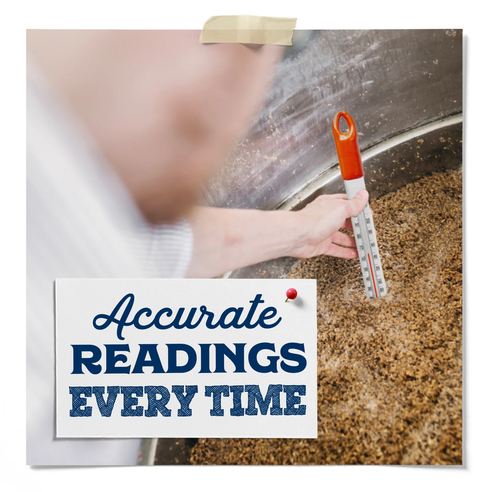 This thermometer is not designed for use in boiling liquids. Whether you’re brewing, fermenting, or cooking, this thermometer offers a simple and effective way to take temperatures when they matter.