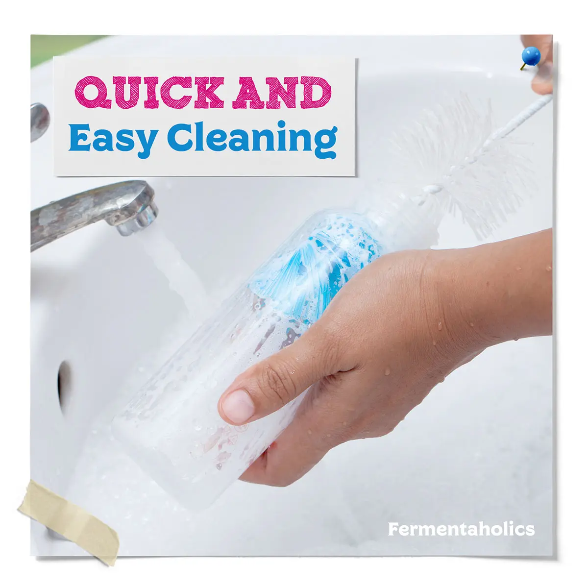 Easily clean beer, kombucha, and swing-top bottles! The foldable handle and 2-inch bristles reach every corner, ensuring a hygienic clean for bottles 9 inches or shorter.