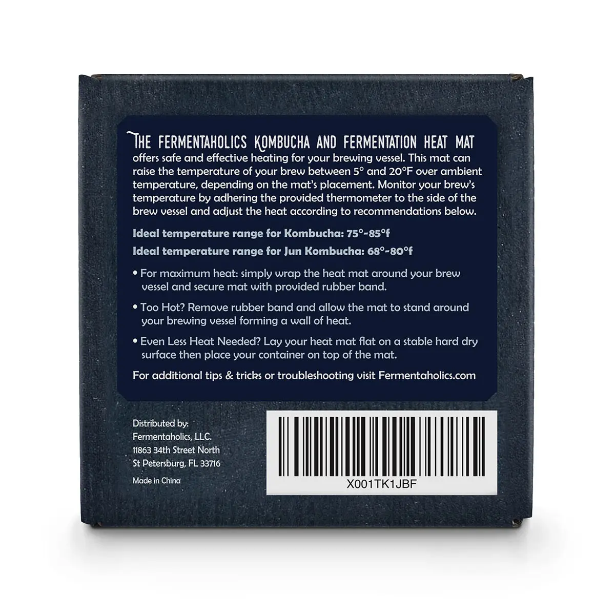 Offer safe and effective heating for your brewing vessel. Use this heat wrap year-round as the temperature fluctuates in your home. This Kombucha Brewing and Fermentation Heating Mat is designed to keep your fermented products at the optimal temperature. This kombucha warming mat has a thermometer included. Temperature control is the key to brewing consistently great Kombucha. The ideal temperature range for Kombucha is 75° and 85° F. Ideal temperature range for Jun Kombucha is 68° and 80° F.