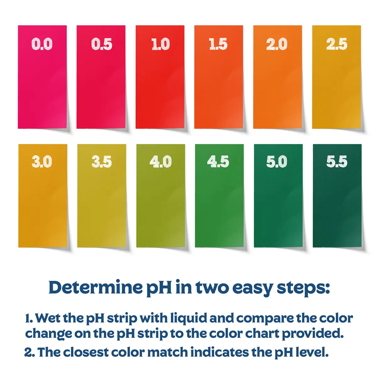 Let liquid sit until the color registers and compare to chart: the color match indicates the pH level.