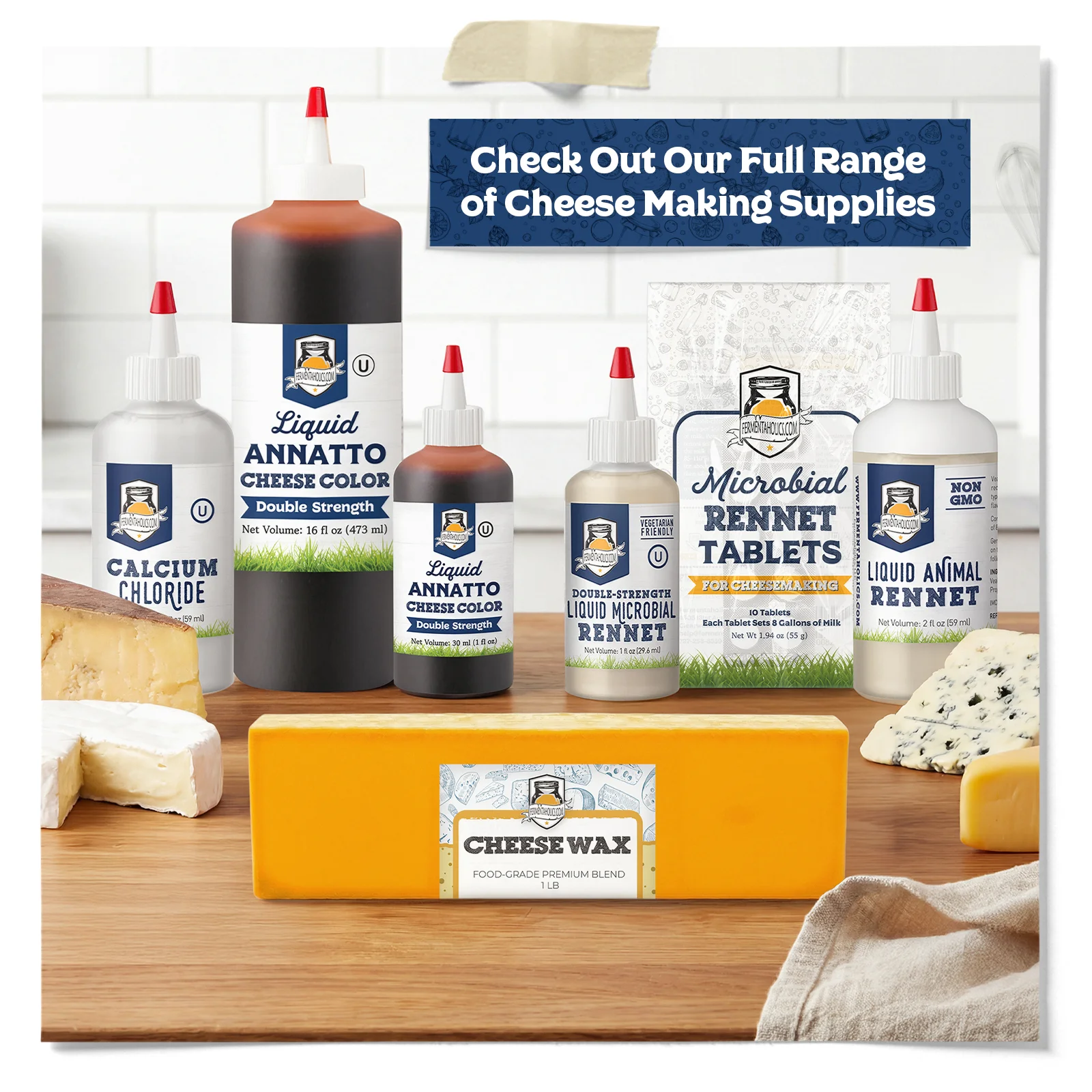 Achieve professional results with minimal effort. 1-3 drops per gallon ensure bold, even hues for cheddar, Colby, and beyond. A must-have for cheesemakers!