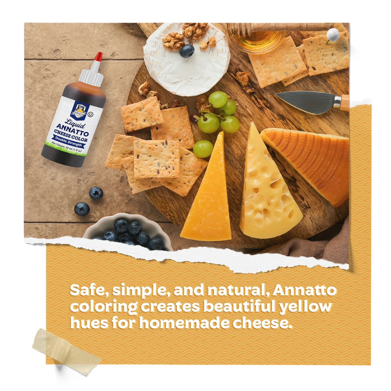 Liquid annatto is your go-to solution for coloring cheese and other foods. Just 1-3 drops per gallon of milk creates vibrant yellow, orange, or red hues that stay consistent. Perfect for cheesemakers and food coloring, it’s simple, precise, and delivers professional results in every batch.