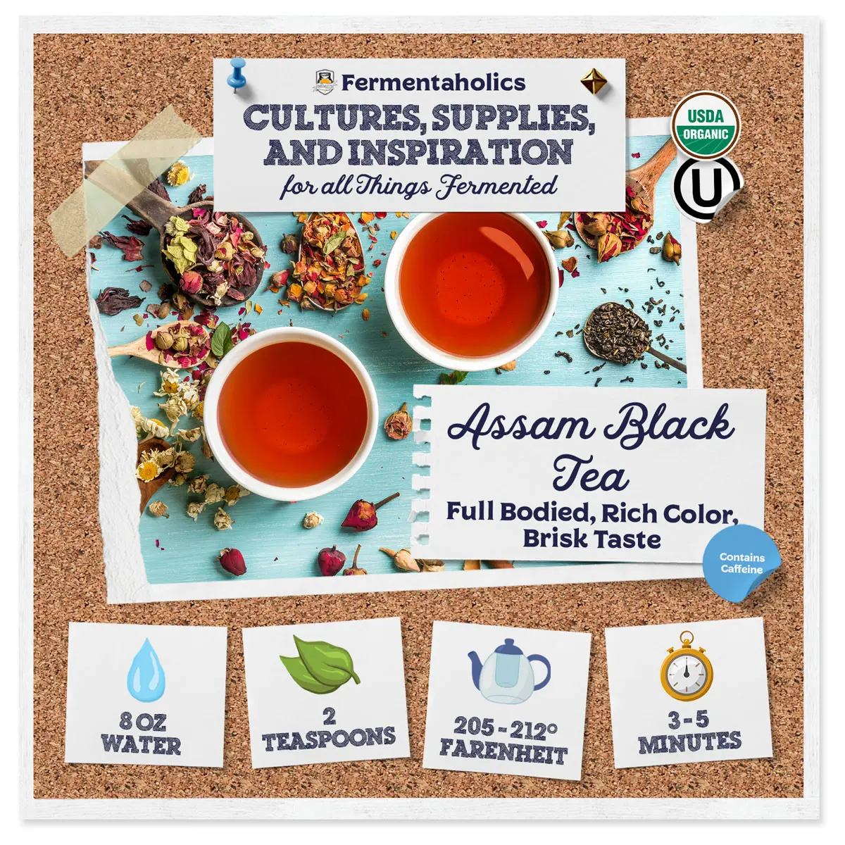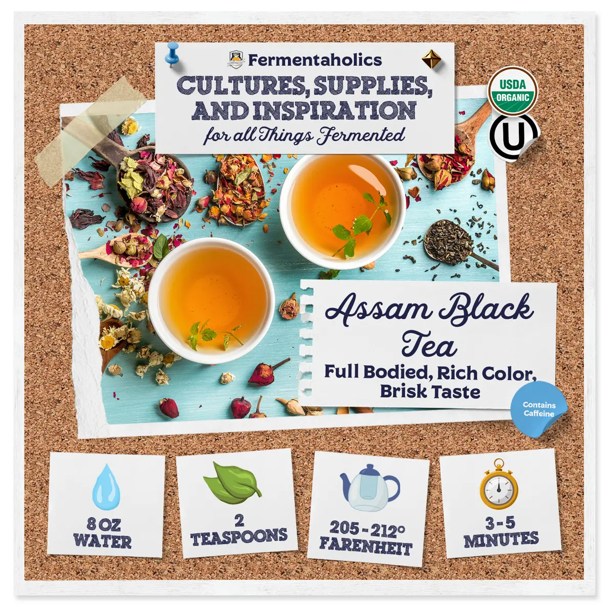 Given Assam black tea’s flavor and caffeine content, it is an ideal partner for your Kombucha fermentation.