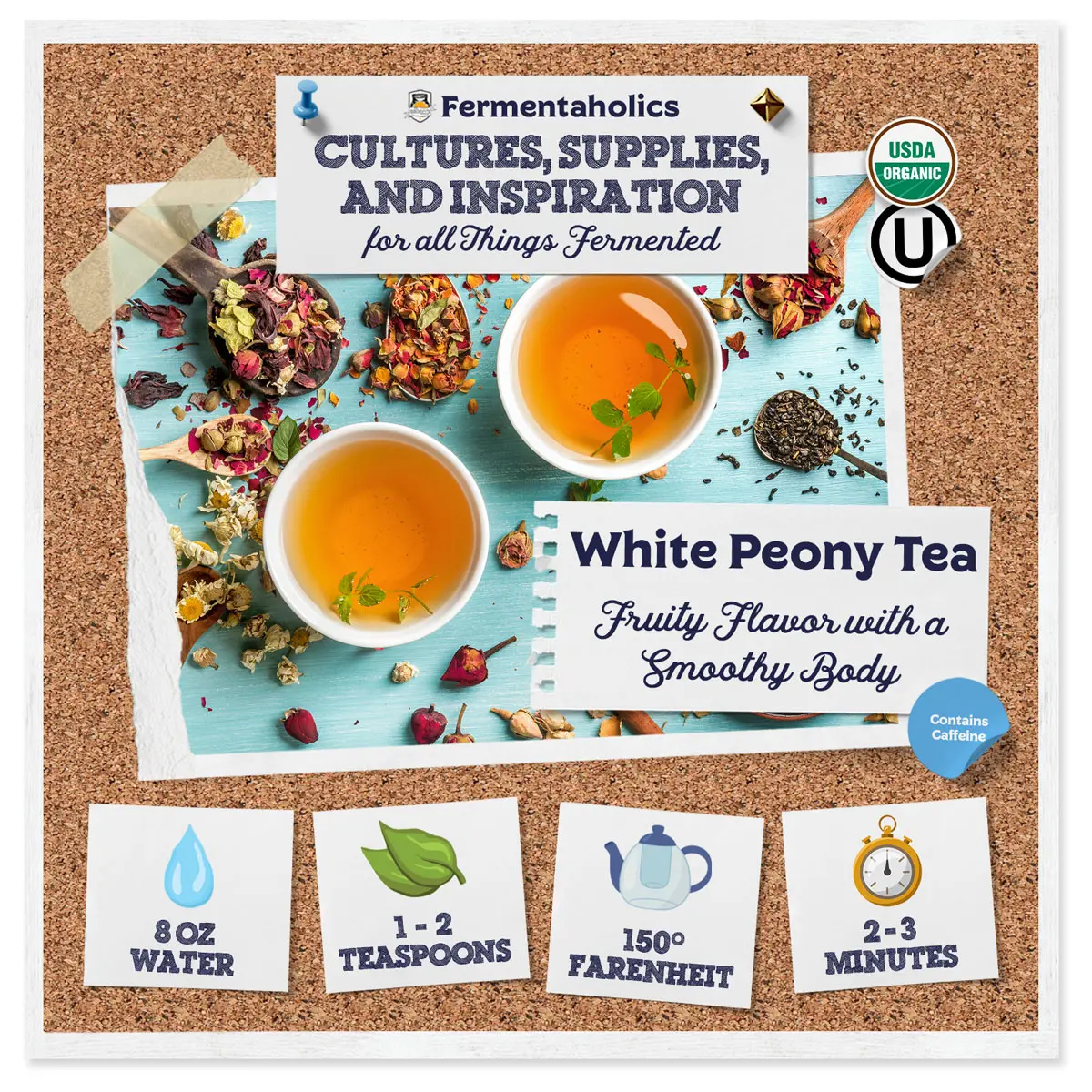 Add Honey and Lemon to your White Peony Kombucha for the perfect flavor profile! When Infused properly, it carries a fresh, slightly sweet, taste that will satisfy your taste buds enough for all-day consumption.