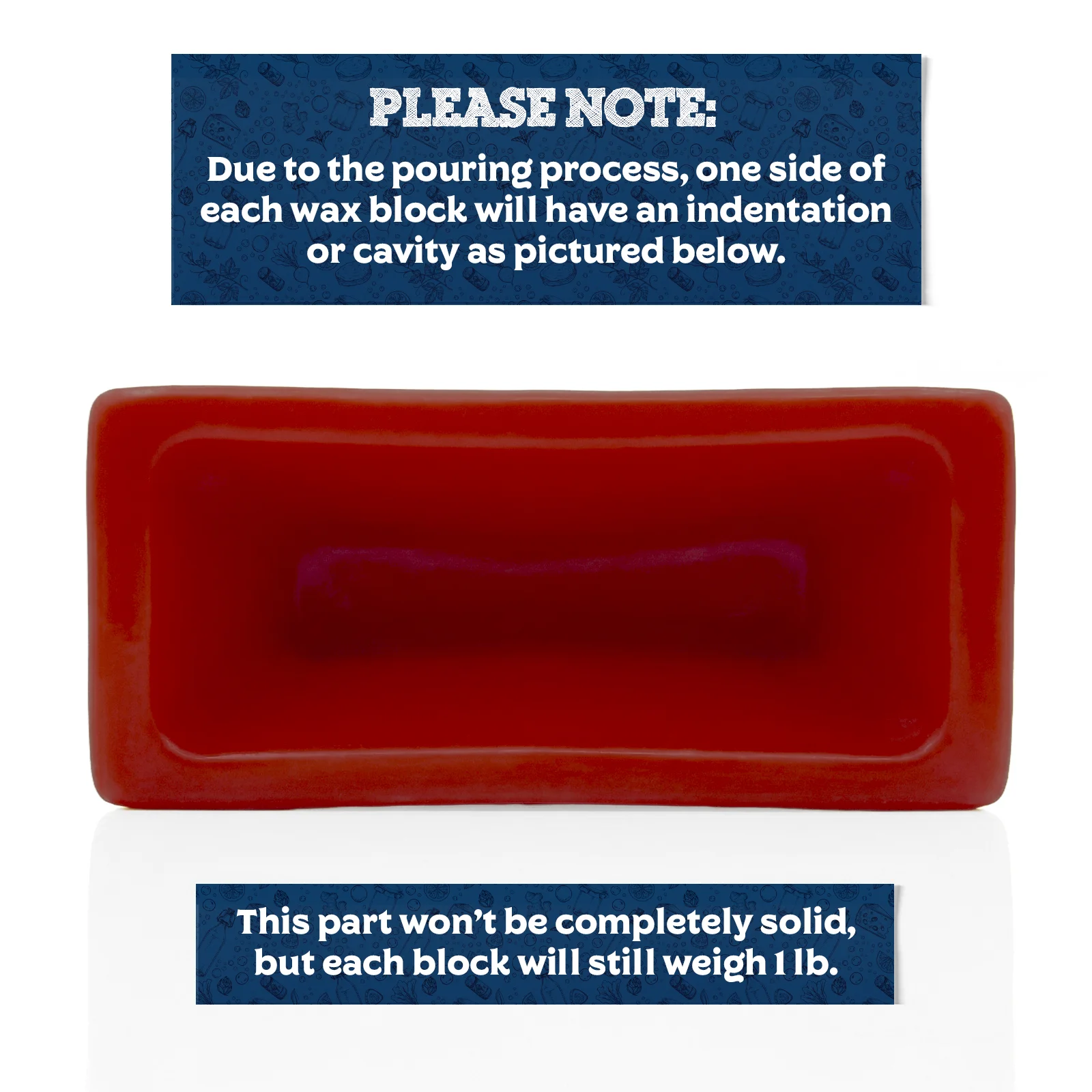 | Cheese Wax | Red 2 lbs., Red 1 lb., Black 2 lbs., Black 1 lb., Natural 2 lbs., Orange 1 lb. |