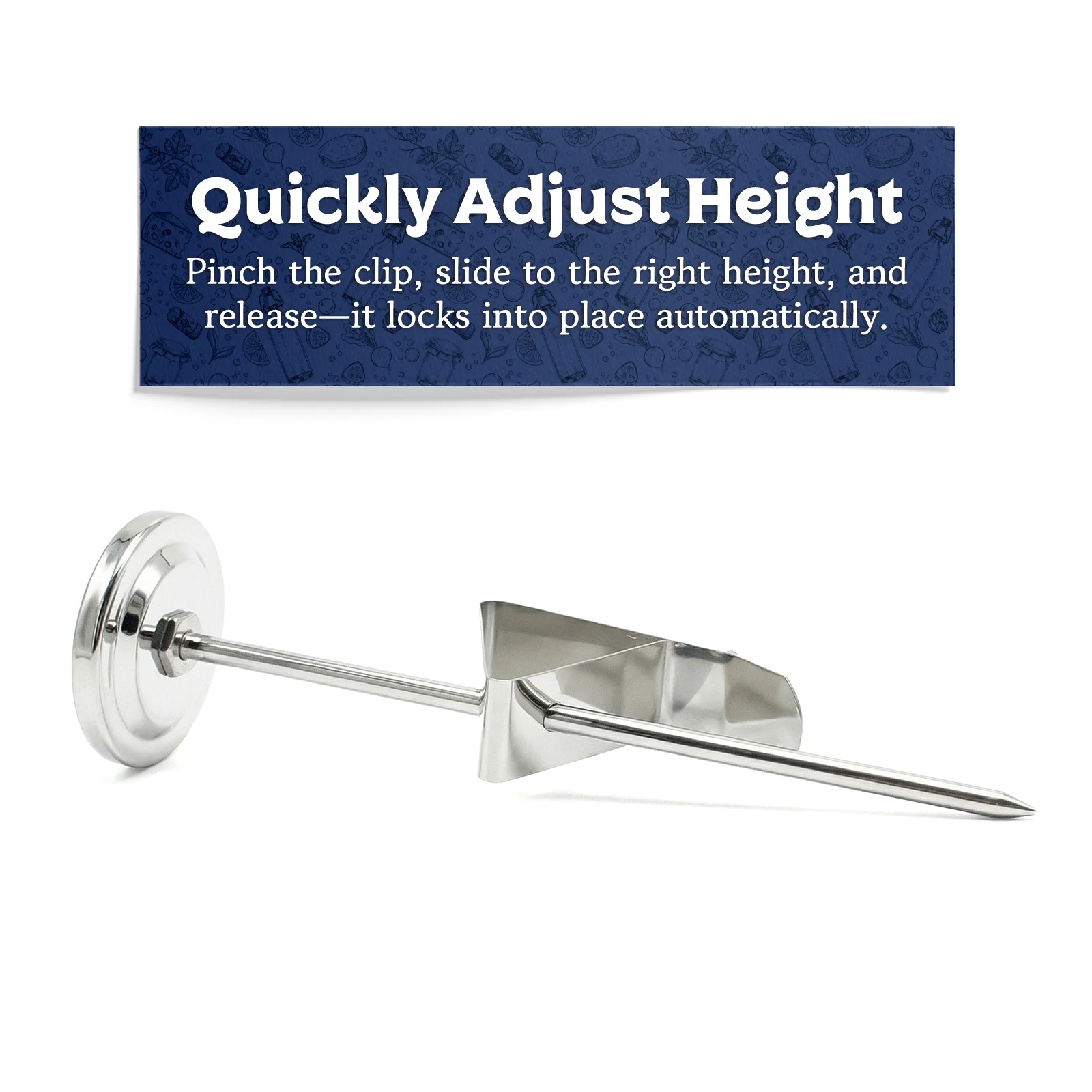 Included is a locking, adjustable clip that attaches securely to the rim of cups, jars, pots, pans, or other containers. You can pinch the clip to slide it up or down, setting the probe at the exact depth you need—keeping it stable and preventing it from touching the bottom or falling into your ingredients.