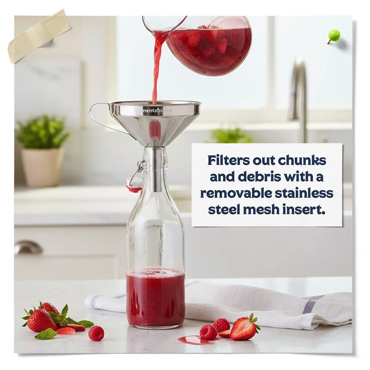 Bottle kombucha, vinegar, or oils with ease! A wide base keeps it stable, while the strainer prevents chunks. Rust-proof and easy to store—built to last for years!