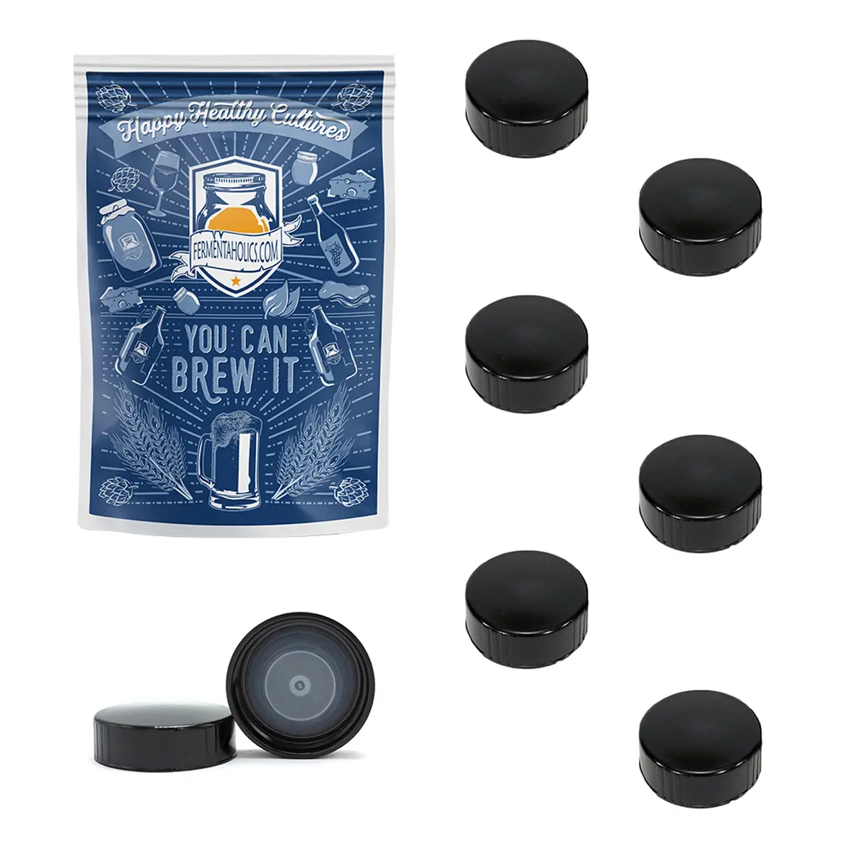These black plastic caps are made to provide good torque retention and the poly cap will not rust over time. The airtight caps ensure maximum carbonation build-up and flavor development by creating an airtight seal at the opening of your bottle. They are sure to help you brew successfully, whether brewing Kombucha, Kefir, Beer, Kvass, Soda, Cider, Mead, Wine, Infused Oils, Infused Vinegars â youâre only limited by your imagination!