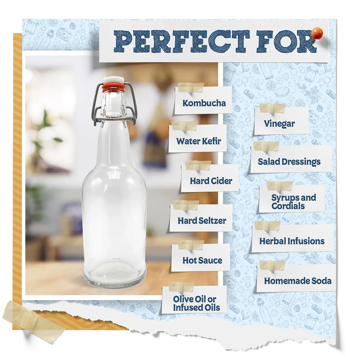 Whether it’s a staple classic recipe or one you’re creating on the fly, these bottles will keep your brew safe and add carbonation and flavors to your liking.