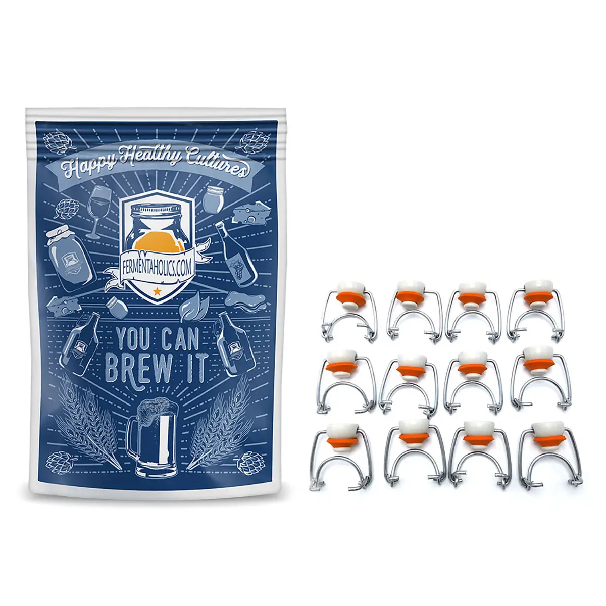 Ensure your homebrews stay fresh and carbonated with our replacement flip-top bottle caps. You’ll receive 12 caps with rubber gaskets, made in the USA. These caps fit glass Grolsch style or EZ-cap flip-top bottles and growlers, creating an airtight seal to preserve flavor and carbonation. Perfect for bottling beer, wine, hard seltzer, hard kombucha, and more. Save money by extending the life of your bottles and enjoy easy maintenance with dishwasher-safe, high-quality materials.