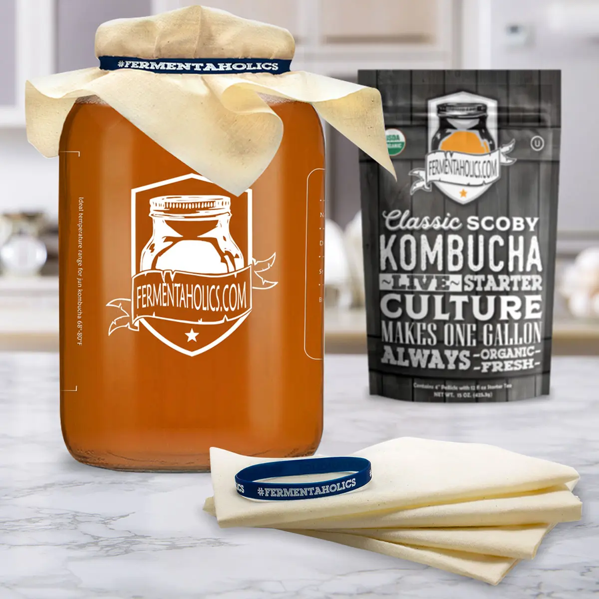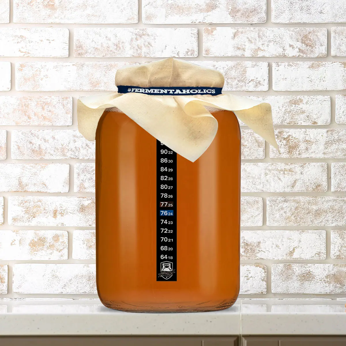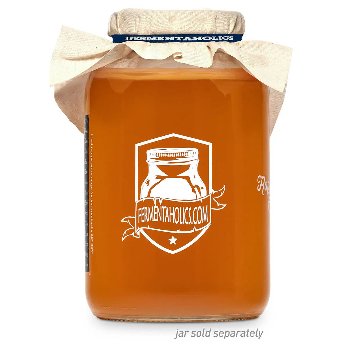 The Unbleached Muslin Kombucha Cover with Rubber Band provides a breathable, protective cover for your brew, keeping out fruit flies and other pests with its tight weave. This durable, 10-inch muslin square fits a variety of jar sizes, creating a safe, healthy environment for your kombucha. Hand washable for easy reuse.